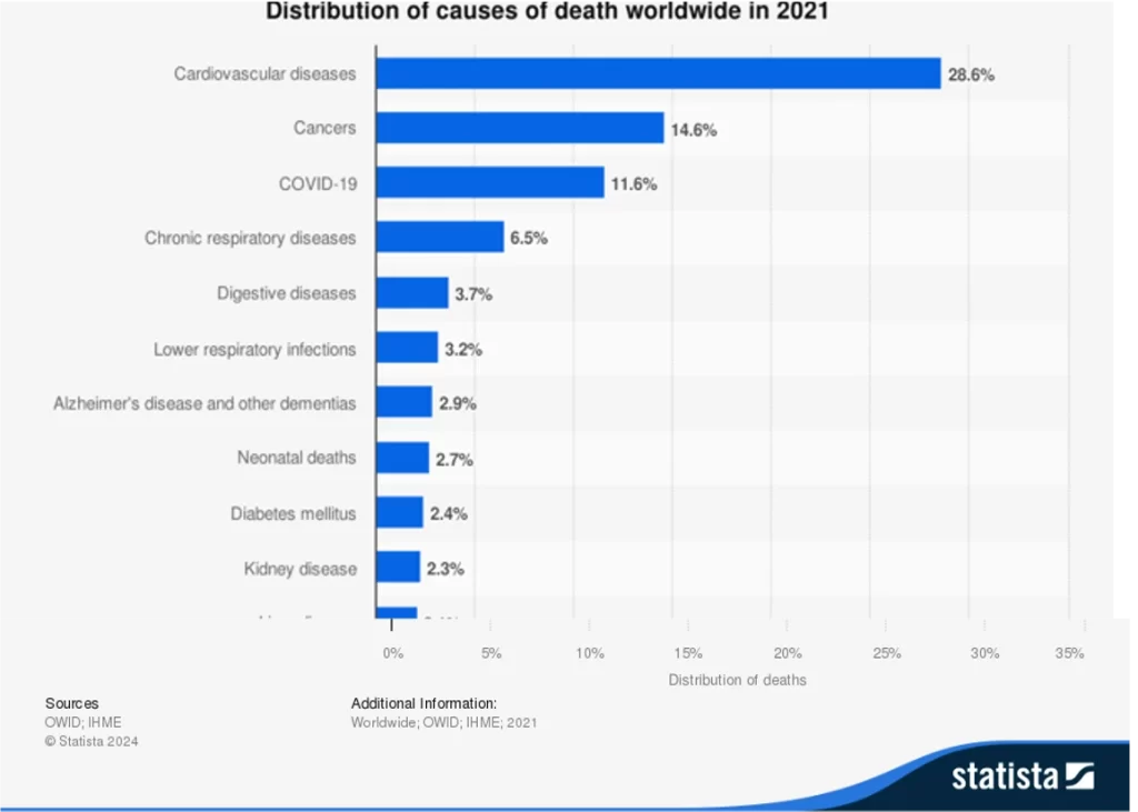 Your next likely assumption may also be correct. Cancer accounted for around 14.6% of all deaths worldwide in 2021.